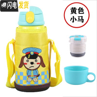 三维工匠儿童保温杯带吸管式水杯男女小学生不锈钢防摔幼儿园便携两用水壶 黄小狗(三盖)500