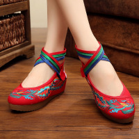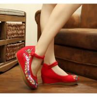 2017新款老北京女鞋布鞋春秋季民族风绣花鞋坡跟单鞋内增高厚底红色结婚鞋