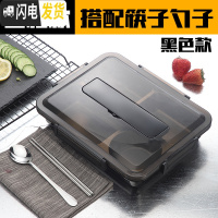 三维工匠304不锈钢饭盒保温带盖成人食堂餐盒大容量餐盘分隔型4格便当盒 透明黑新4格+餐具