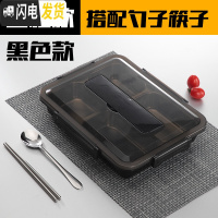 三维工匠餐盘分格上班族大容量食堂保温饭盒分隔型304不锈钢学生餐盒套装 透明黑4格+餐具