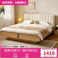 全友家居皮艺床简约现代软包床屏原木风小户型卧室收纳储物双人床