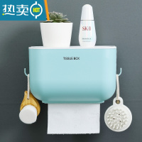 敬平创意卫生纸盒卫生间纸巾厕纸置物架家用免打孔厕所防水抽纸卷纸筒 蓝色(大号)浴室置物架