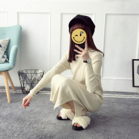 秋冬新款中长款百搭套头打底毛衣裙女韩版潮纯色针织连衣裙打底衫