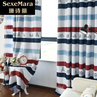 珊诗丽英伦条纹地中海风格儿童房卡通客厅卧室环保遮光定制窗帘布料成品