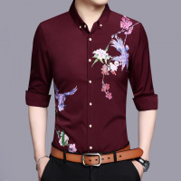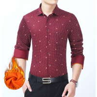 锦铭七玥青男士保暖衬衫男长袖加绒加厚冬季韩版印花修身衬衣男保暖内衣