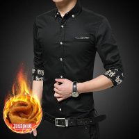冬季长袖衬衫男韩版修身加绒保暖衬衣男休闲青年加厚男装