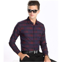 步来褶惠2017秋冬季纯棉长袖衬衫男士商务休闲横条格子免烫夏