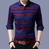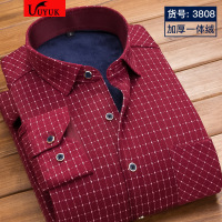 啄木鸟冬季男士保暖衬衫男加绒加厚中年长袖条纹保暖衬衣男爸爸装