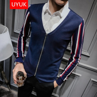 UYUK 冬新款加绒假两件保暖衬衫男青年修身型加厚长袖衬衣针织衫潮男装