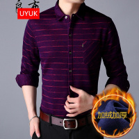UYUK加绒衬衫男2017冬季新款青年商务休闲保暖长袖衬衣男修身加绒打底衫