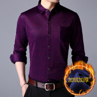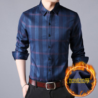 男装冬季新款加绒衬衫男士长袖商务休闲无痕弹力保暖衬衣男