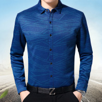 花花公子2024秋冬季新款长袖衬衫男加绒加厚中年爸爸休闲保暖寸衣