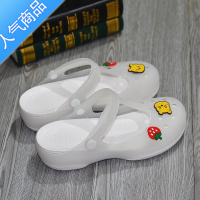 SUNTEK厚底洞洞鞋女松糕底外穿防滑少女心白色护士包头半拖鞋两穿沙滩鞋