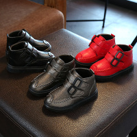 秋冬新款靴子2017韩版儿童皮靴男童双魔术贴短靴女童二棉保暖鞋子