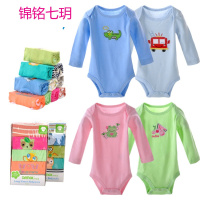 锦铭七玥纯棉新生儿三角哈衣爬服婴儿服装 连体衣5件包婴儿服装厂家直销