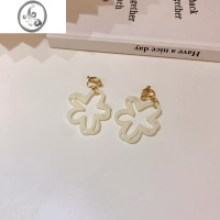 JiMi镂空花瓣白色花朵耳钉仙气法式甜美耳夹无耳洞女复古气质耳环耳饰