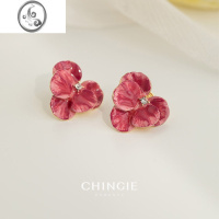 JiMi925银针丝绒花朵耳环高级感轻奢耳钉气质高级大气秋冬红色耳饰女