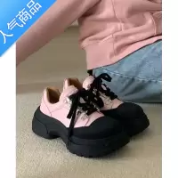 SUNTEK粉色玛丽珍鞋女夏季圆头厚底小皮鞋增高运动老爹鞋拼色松糕乐福鞋
