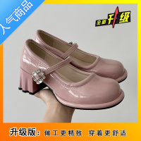 SUNTEK网红粉色粗跟高跟鞋女2023新款夏季百搭法式玛丽珍小皮鞋