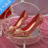 SUNTEK红色婚鞋新娘鞋秀禾婚纱两穿2022新款细跟法式亮片低跟高跟鞋女