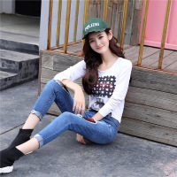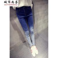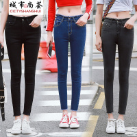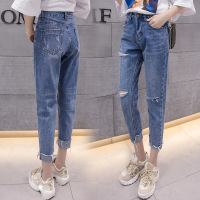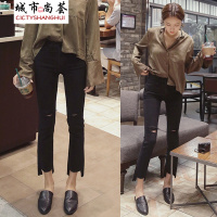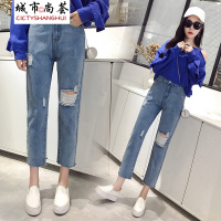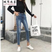 2018新款女装个性时尚显瘦破洞牛仔裤女高腰九分裤修身直筒裤CYLLHYY