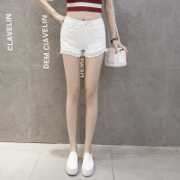 薇侣2017新品实拍潮女纯白色蕾丝花边牛仔超短裤高腰显瘦百搭夏热裤