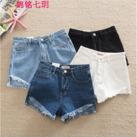 锦铭七玥跨境欧美前短后长牛仔短裤女高腰短裤女夏学生热裤牛仔裤
