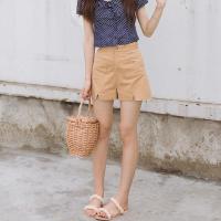 2017新款瞌睡兔爱心口袋裤脚小心机开叉高腰短裤女夏2017新款显瘦微喇