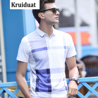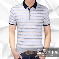 新款男式短袖T恤翻领T恤衫夏季条纹半袖潮男休闲体恤男士
