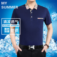 商务时尚纯色短袖T恤 夏季新款男士翻领半袖T恤衫中年男装体恤衫