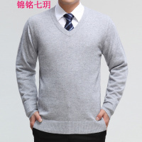 锦铭七玥中男士色羊毛衫V领中男式毛衣爸爸装打底衫男装