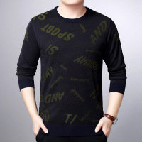 新款中年男士长袖T恤打底衫时尚印花爸爸装款圆领毛衣
