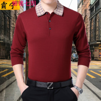 花花公子秋冬季纯羊毛衫男翻领中年爸爸装加厚毛衣针织打底衫