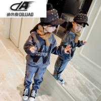 男童春秋新款儿童装加绒卫衣两件套宝宝加厚外出运动套装