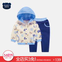 锦铭七玥童装2017秋款婴童宝宝皇冠小熊三条杠拉链外套+长裤纯棉运动套装