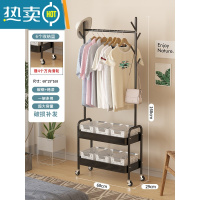敬平简易衣架落地家用卧室挂衣服置物架网红衣帽架可移动阳台晾衣架子 树杈双层+收纳盒[黑色]