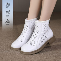 2026春夏镂空洞洞凉靴真皮厚底防滑圆头大码女靴复古软底妈妈短靴