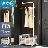 敬平北欧挂衣架落地卧室家用衣帽架轻奢杆式多功能客厅晾衣服置物架子 [豪华款]170CM奶白色+收纳筐晾晒架