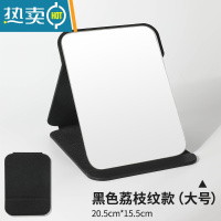 敬平折叠镜子化妆镜台式桌面可立家用小型便携办公室学生宿舍梳妆镜男 黑色平纹款(大号)25.5cm*18cm[送便携式用镜
