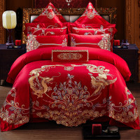 婚庆床品四件套大红色纯棉全棉龙凤被套刺绣结婚被单婚礼床上用品