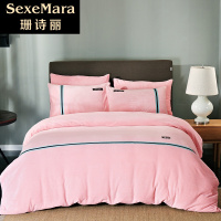 珊诗丽水晶宝宝绒冬季保暖贴布绣床品1.8m加厚4四件套1.5珊瑚绒法兰莱粉红色(悦动)