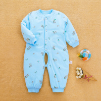 薄棉婴儿连体衣秋冬季纯棉哈衣开档夹棉加厚家居服宝宝冬装