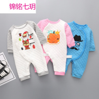 锦铭七玥婴儿纯棉外出夹棉连体衣 加厚韩版童套装长袖哈衣 新生儿服装批发
