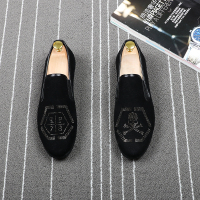 新款男士豆豆鞋个性骷髅头男鞋平底懒人套脚乐福鞋发型师铆钉潮鞋