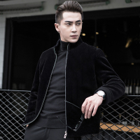 勎霸 新款羊剪绒皮毛一体外套男装短款皮衣休闲立领夹克羊毛皮草大衣