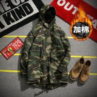 冬季新款中长款迷彩棉衣男韩版修身加厚保暖青年连帽棉服外套潮