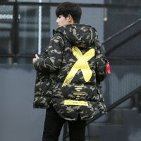 男式棉服修身2017冬季新款韩版学生羽绒迷彩棉衣男士中长款连帽潮