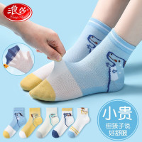 浪莎儿童袜子男童5双装卡通棉袜春夏网眼中筒袜肤透气运动男孩童袜 童趣恐龙 21-26码脚长16-18cm建议3-5岁