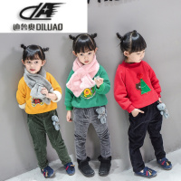 女童秋冬装套装2017新款洋气儿童运动金丝绒小女孩加绒加厚三件套