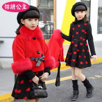 女童套装秋冬装2017新款中大童公主裙套装女孩仿皮草毛毛衣两件套